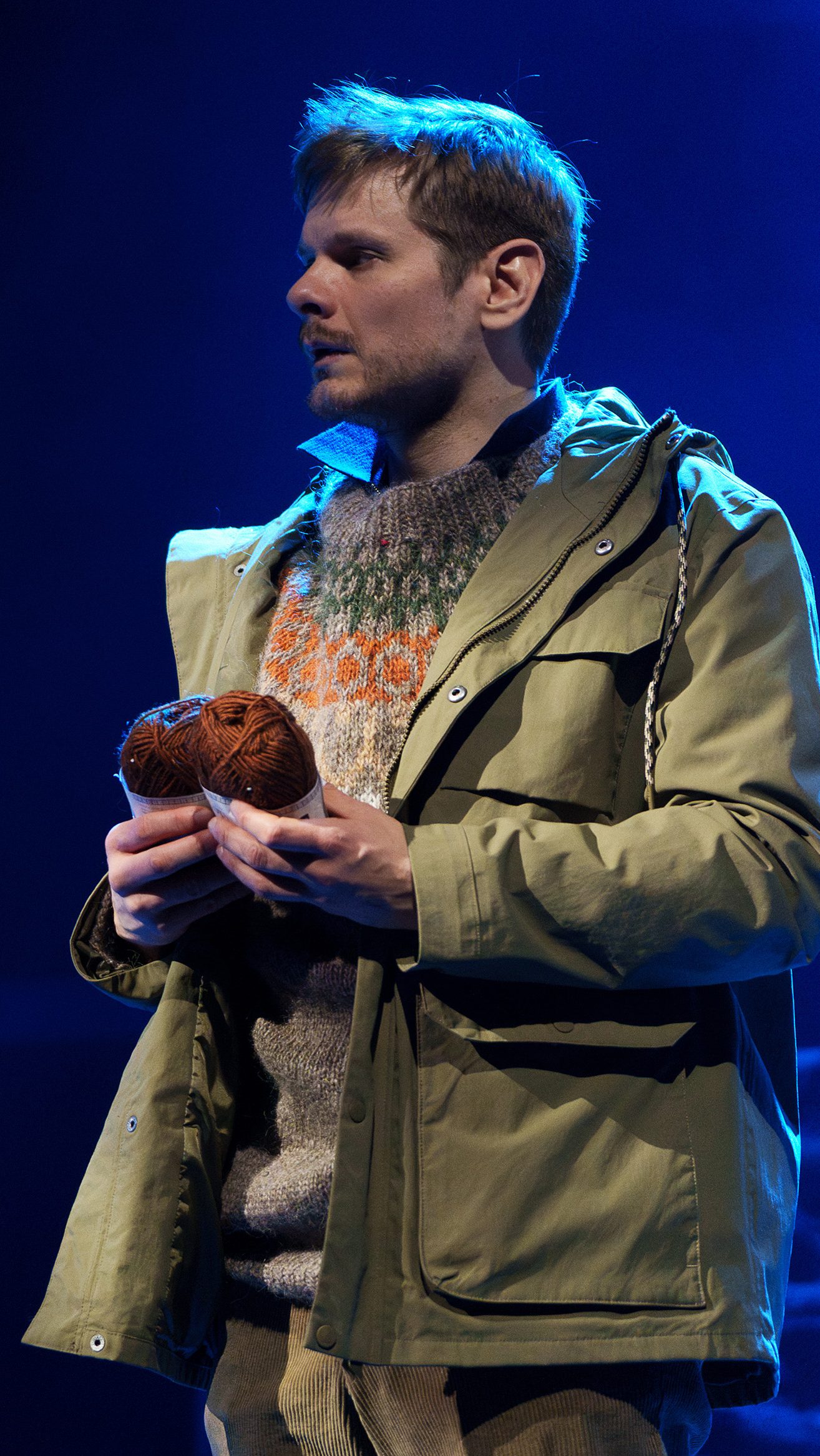 Innostuimme neulonnasta niin, että tilasimme helsinkiläiseltä suunnittelijalta Joona Höriltä teatterille oman, islantilaishenkisen kaarrokeneuleen. Paidan nimi on Lämpiö, ja sitä voi ihailla teatteriravintola LÄMPIÖSSÄ.