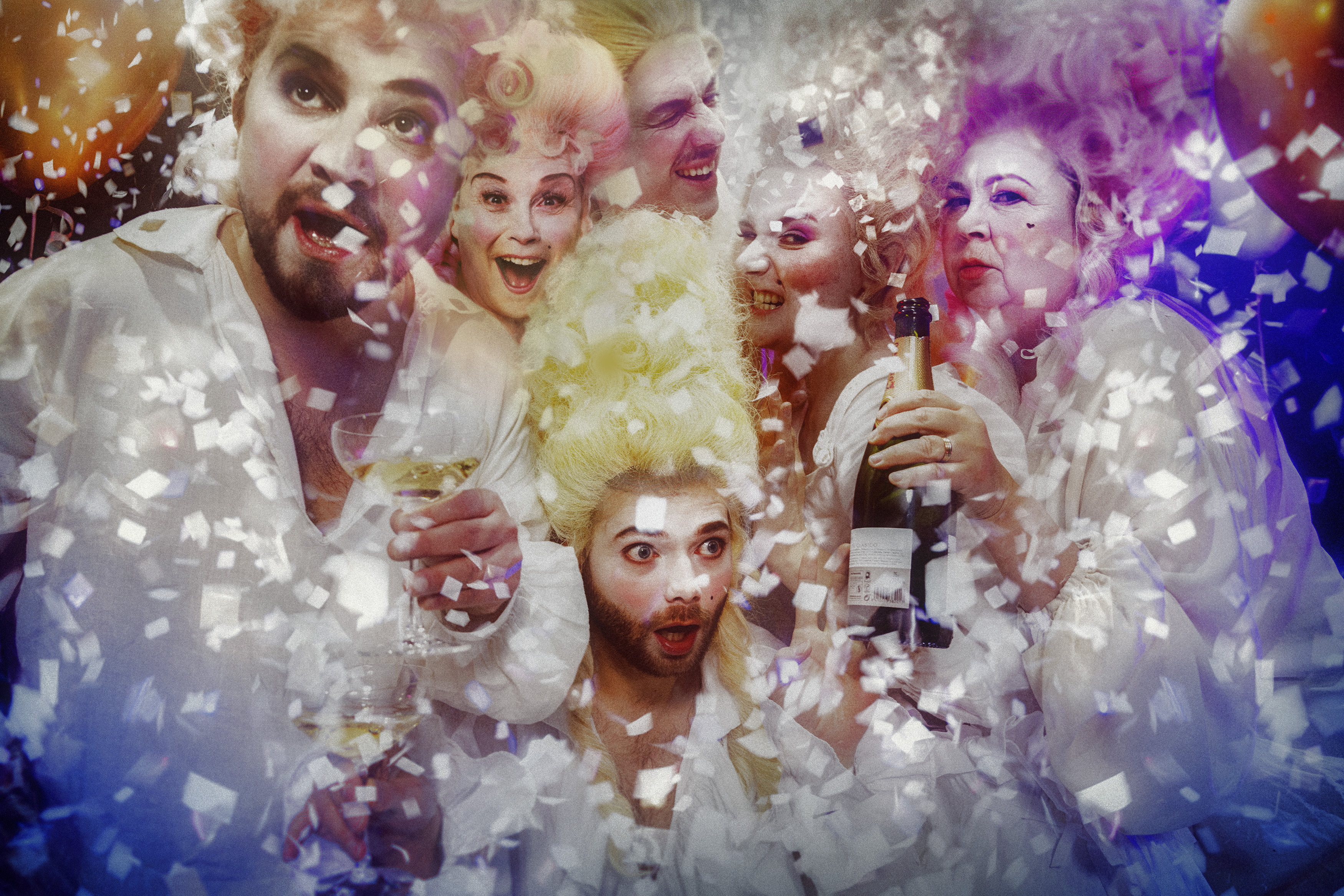 Svenska scenografen och kostymdesignern Sven Haraldsson, som Jakob Höglund ofta samarbetat med, hämtar pastellfärgade rokokokläder, stora peruker och mycket glitter till Lilla Teaterns scen.